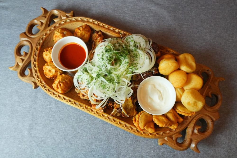 Томленое сырне, нежный шашлык из утки, хрустящие куриные крылышки, румяные жареные манты, ароматные шампиньоны на мангале, пышные бауырсаки и золотистые буйреки.