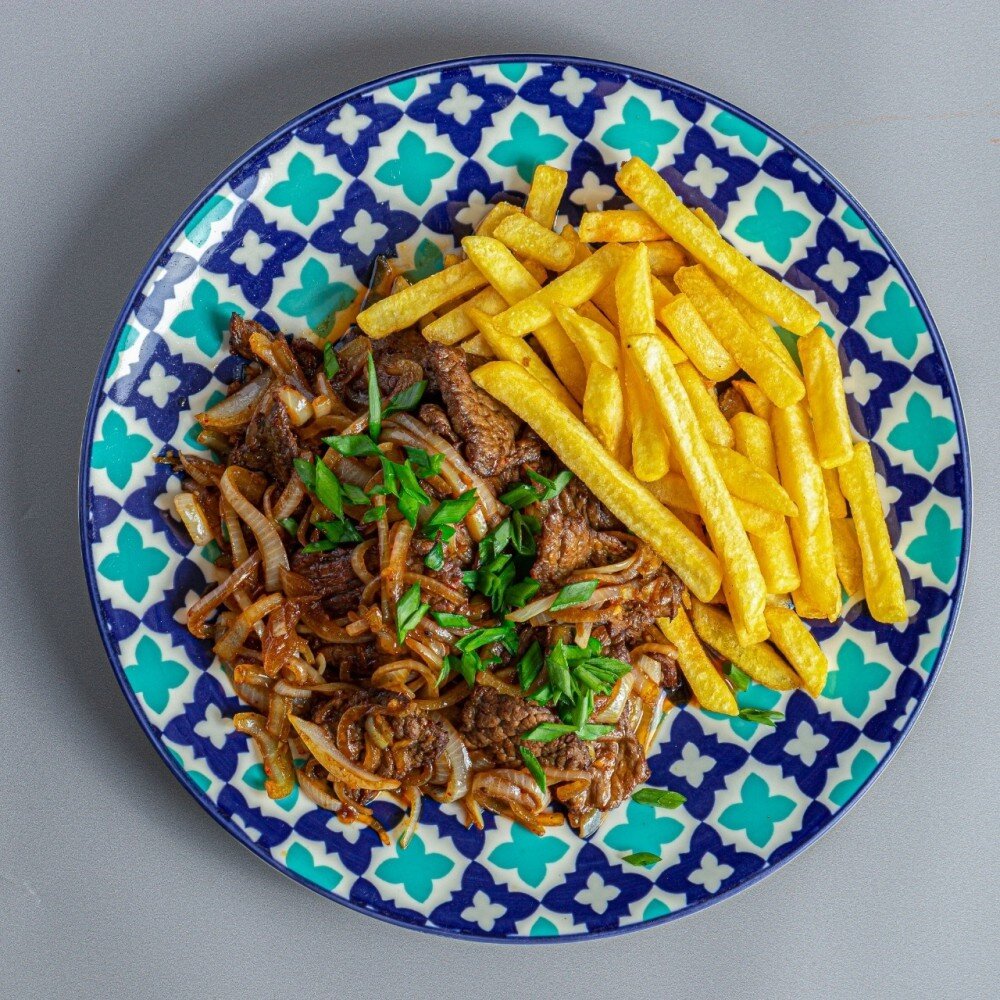 МАЗЗА ароматная телятина, обжаренная с луком, подается с хрустящим картофелем фри. Простое, но невероятно вкусное блюдо для любителей мяса.