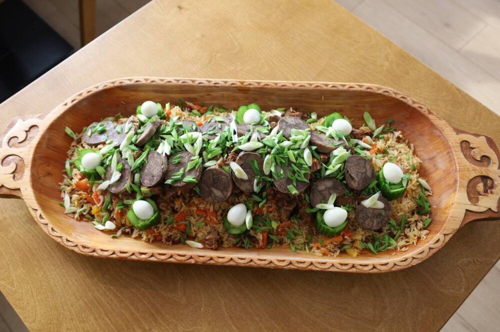 ХАН-ПЛОВ приготовленный с особой любовью плов, подается с ароматным шужуком свежими томатами, огурцами и зеленью.