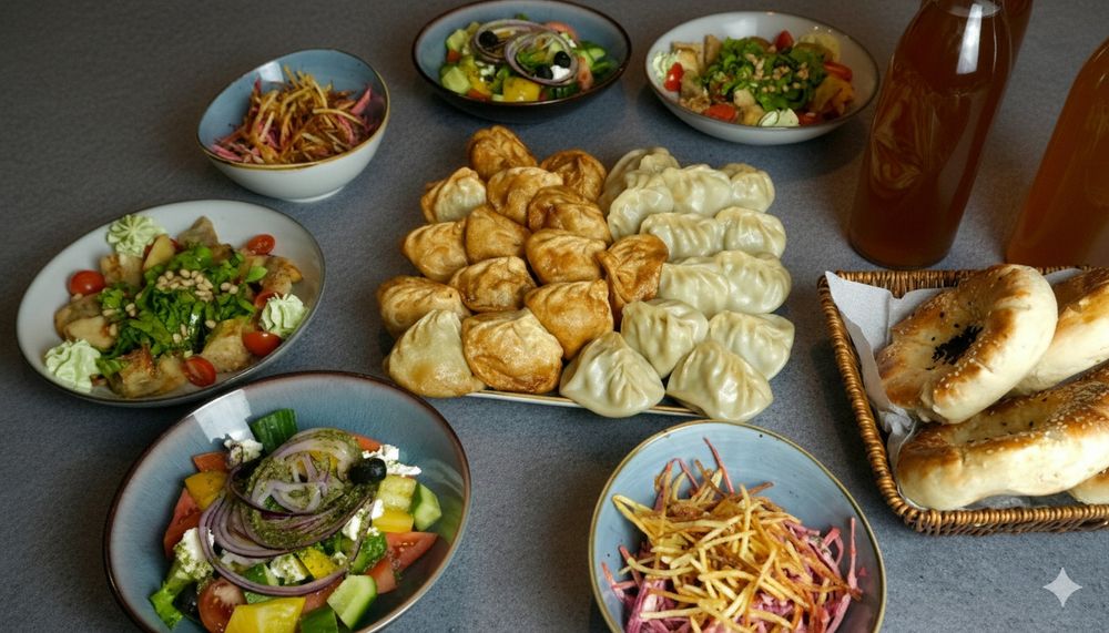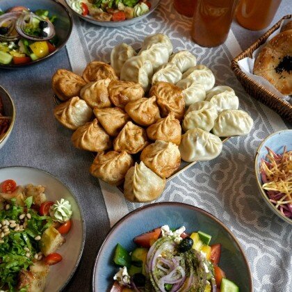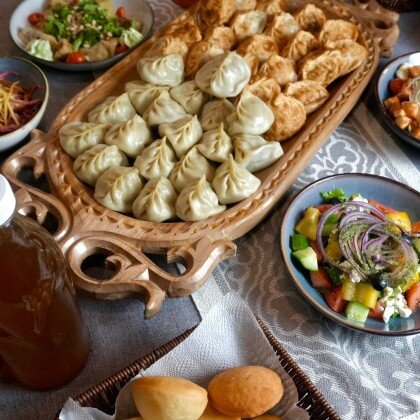 Вы сохраняете 10 188 тг. Большой сет: жареные и паровые манты по 3 порции, два салата — баклажаны, французский и греческий, баурсаки, 4 лепёшки и 3 компота. Щедрый, разнообразный и выгодный набор для вкусного общего стола.